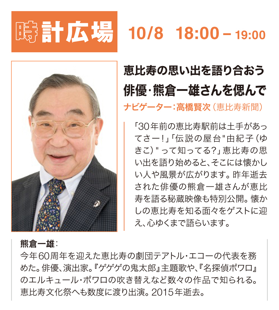 「恵比寿の思い出を語り合おう 俳優・熊倉一雄さんを偲んで」