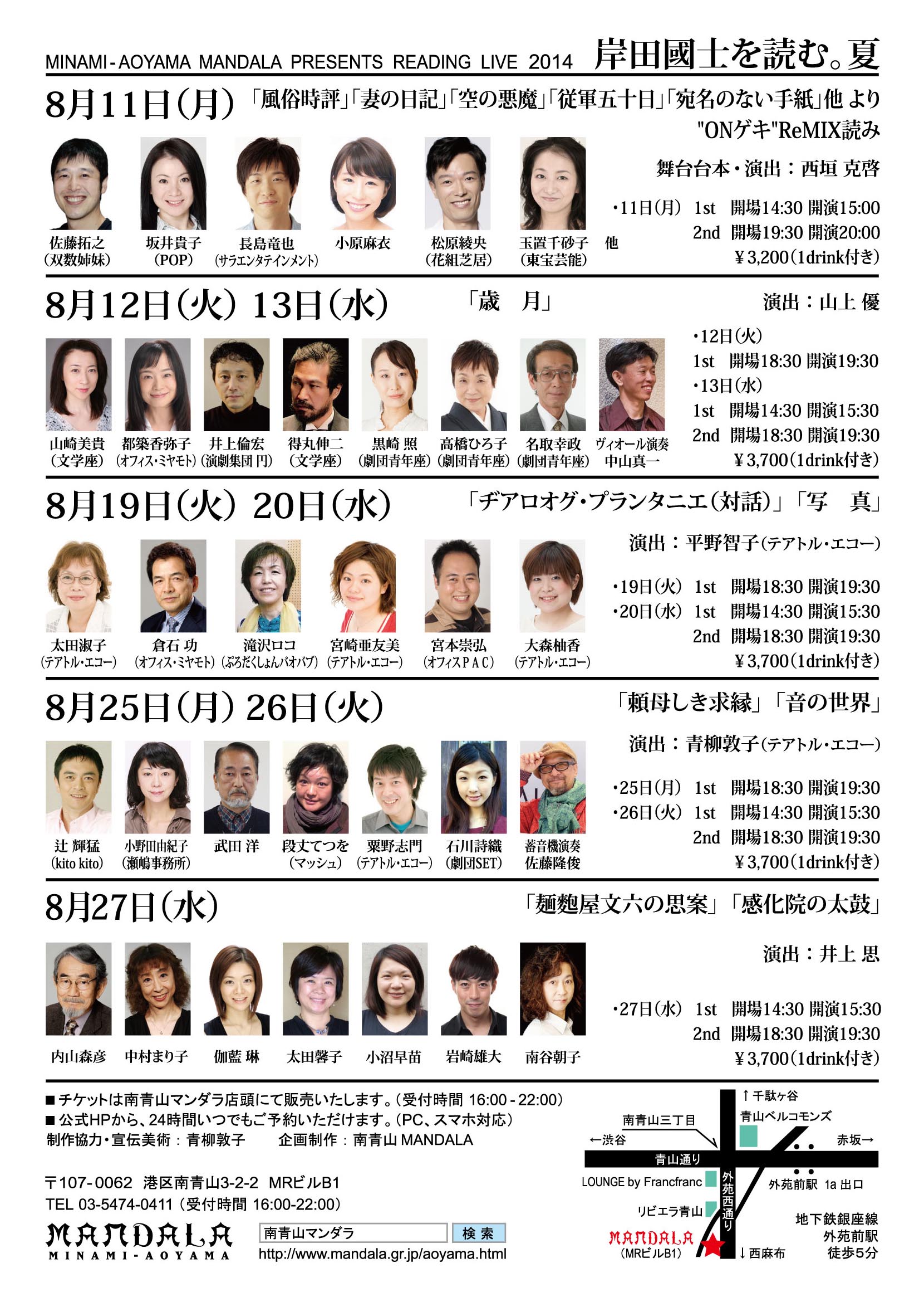 2月に続いて8月25日と26日の両日、リーディング・ライブを演出します。