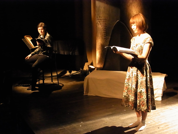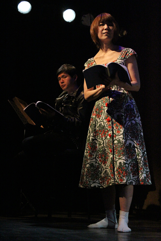 この作品を芝居として上演する時には、女優がたった一人きり、四方を部屋の壁に囲まれたイメージで演じることになると思いますが、そこはリーディングライブ。優さんはリーディングならではの演出を加えました。