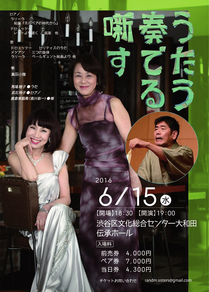 国立音大の先輩、馬場睦子さん(メゾソプラノ)と武石玲子さん(ピアノ)のリサイタルです。