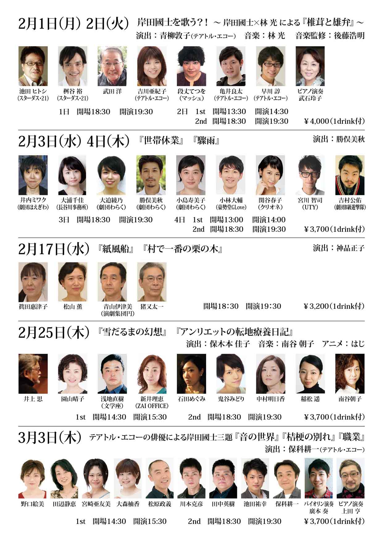 2月2日(火)1st. 14時30分 開演 2nd. 19時30分 開演